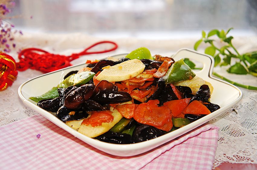 山药炒木耳即是清肠菜,也是滋补养生菜,山药和木耳都是清淡饮食的好食材,而且还可以起到润肺清肺的作用,是健康饮食的首选。山药健脾益胃助消化,有利于脾胃消化吸收,是一味平补脾胃的药食两用之品。黑木耳有“素中之荤”和“素中之王”的美誉,荤素搭配都好吃,凉拌热炒都是美味。能够疏通肠胃,润滑肠道,特别适合晚餐食用,有助于清理肠道,排除体内垃圾。经常食用可以起到减肥美容的功效,所以过年不想长肉肉的小仙女们,可以多吃哒!