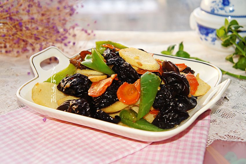 这道菜的做法也非常简单,三五分钟就出锅,真的是一道快手菜。但是有两个小窍门一定要记住。一是山药切开滑滑的很难处理,而且粘液容易引起过敏,最简单的处理方法就是戴手套,或者用清水加少许醋洗,这样可减少黏液。二是切开后容易变黑,记住迅速放入淡盐水中浸泡就不会变色了。很简单吧。节日期间大鱼大肉吃腻了,吃点清淡的蔬菜正好缓解一下油腻感,还能清除体内的毒素和垃圾。喜欢的朋友们一定要备点黑木耳和山药,山药放在纸箱中阴凉处可以保存很长时间。