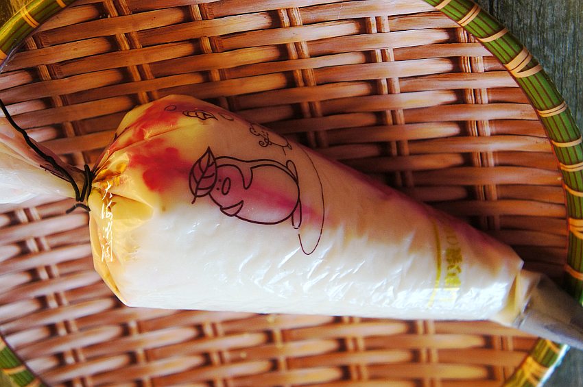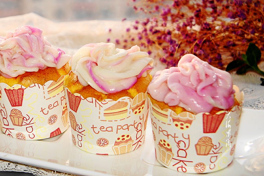 将裱花袋剪掉尖部,露出裱花嘴,挤出自己喜欢的花样就成啦。