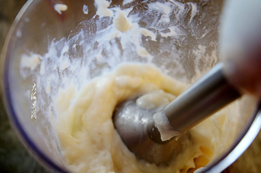 将山药、牛奶、白砂糖加入到料理杯中,我用的是手动料理机,任何料理机都可以使用,目的是把山药打碎成泥,一点块也不要有。