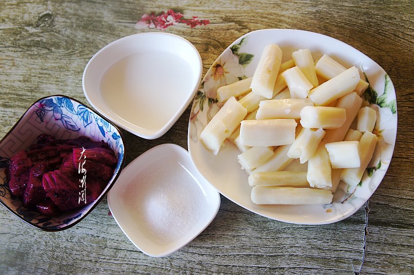 【自制奶油】所需食材:蒸熟的山药215g;纯牛奶43g;白砂糖9g;火龙果汁少许。