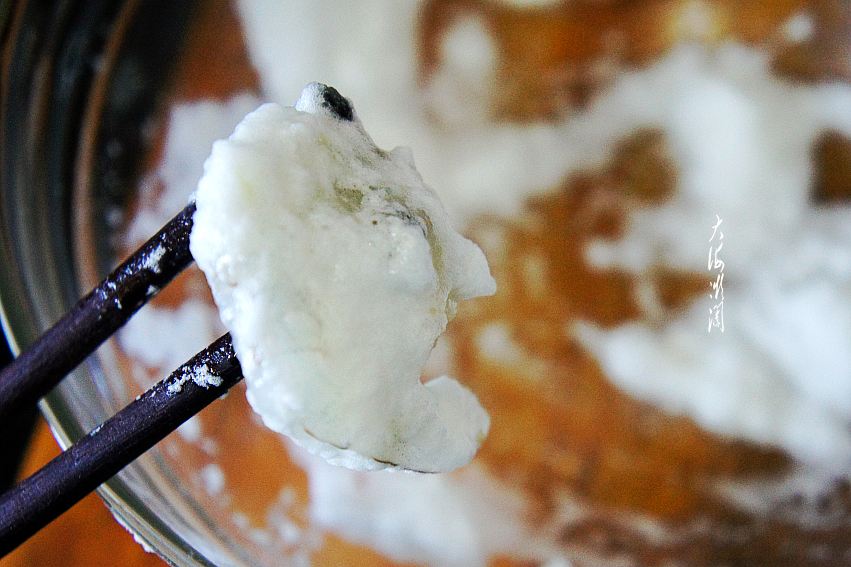 虾仁先裹上一层玉米淀粉(也可以用面粉),然后再裹上打发好的蛋白。