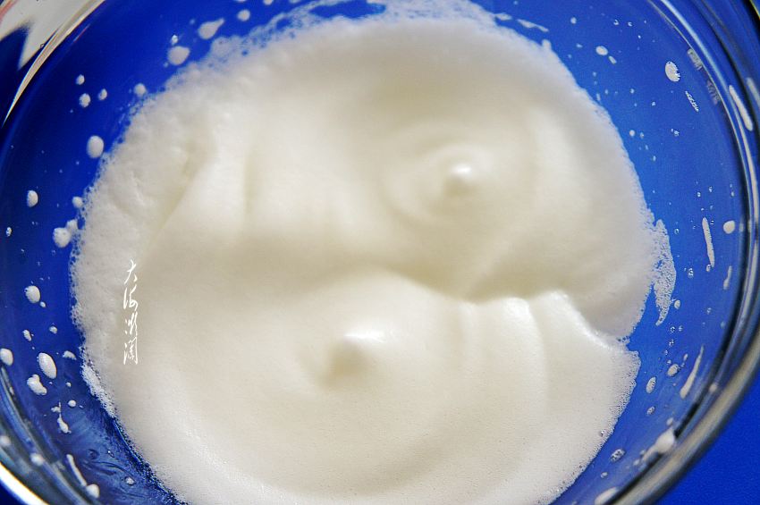 去一个大小适中的碗,将鸡蛋蛋黄蛋白分离,做这道软炸虾仁只用蛋清,当黄另做他用。蛋白加1g盐,滴几滴柠檬(没有可省略),用打蛋器打发至提起打蛋器带有尖角,纹路不消失即可。