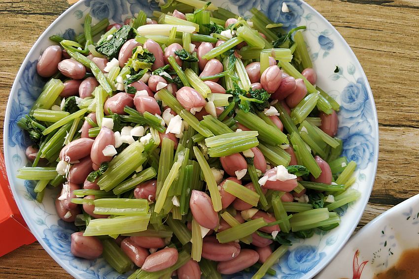 【凉拌菜】芹菜菜凉拌花生,花生加入各种调味料,煮熟成五香花生,再搭配其它配菜比如黄瓜、芹菜凉拌,爽口开胃,超级下酒下饭菜。