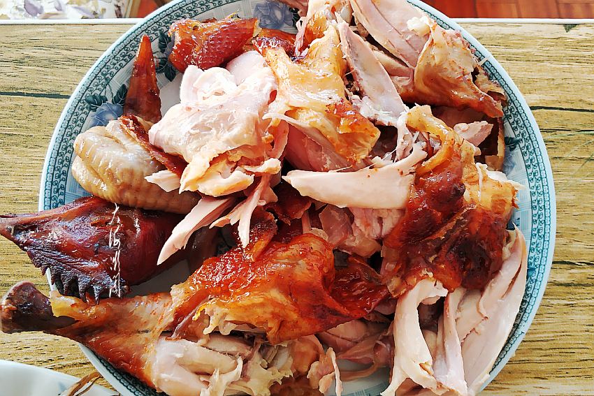 【烧鸡】孩子爱吃的烧鸡,这道菜也是买的现成烧鸡,回家切开上桌,本地烧鸡还挺有名的,味道也是很不错的,不过不赶时间还是喜欢自己做。