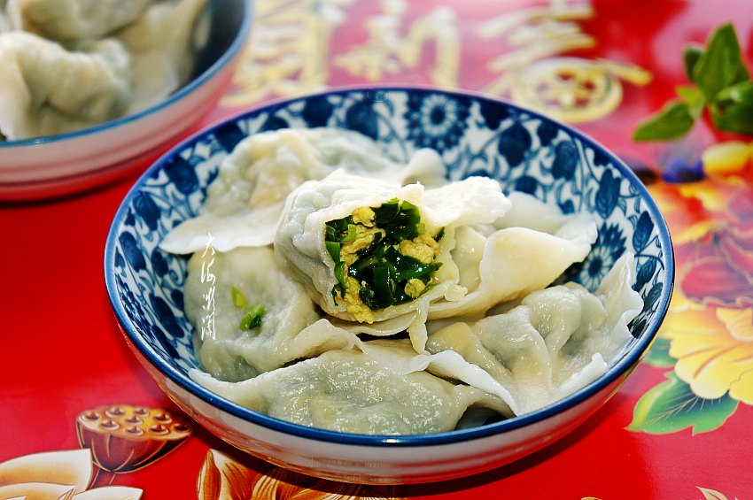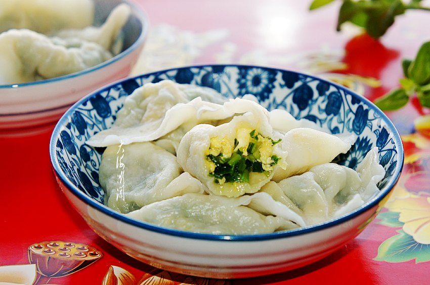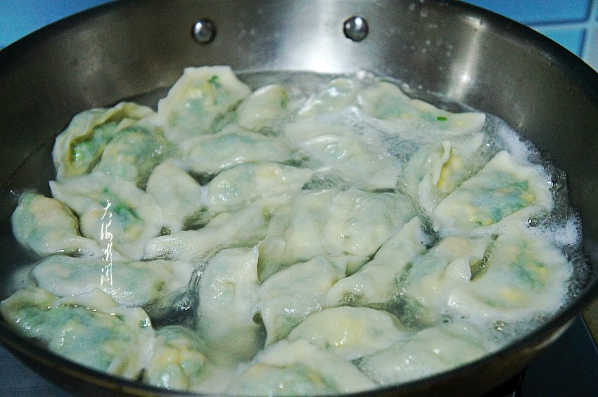 出锅装盘。特别清香爽口的韭菜鸡蛋馅水饺,全家人都爱吃,一次要多包点,少了还真不够吃。