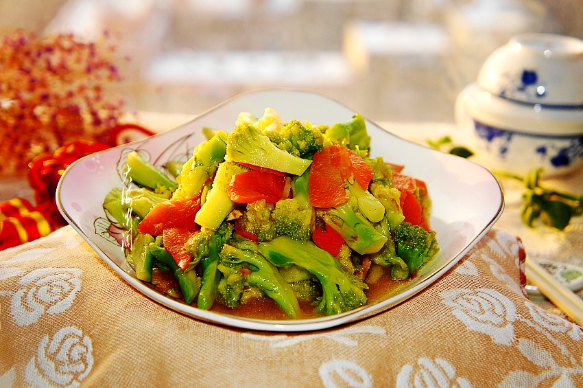 西兰花的做法也很多,是百搭食材,西餐上座率最高,中餐凉拌热炒都是美味,做装饰食材非常漂亮。与素有小人参美誉的胡萝卜才是绝配,色彩艳丽,看着就食欲,脆嫩可口,清爽解腻,吃多少都不胖人。
