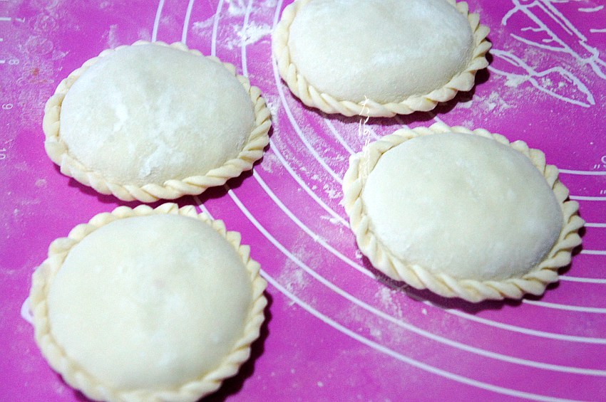 再盖上一片饼皮,合起来捏紧,然后转圈捏成花边,今天我包的是太阳花合子,很适合和和美美的日子。