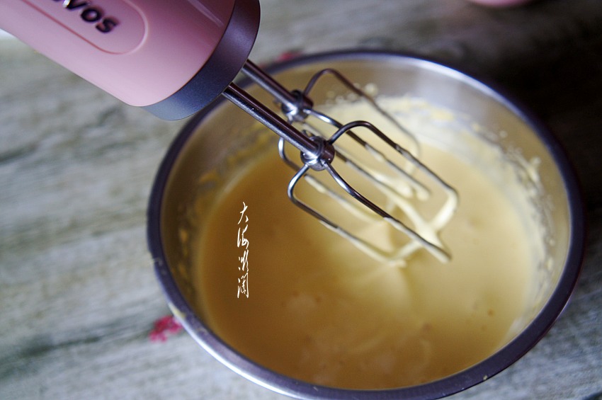 高速一直打发到浓稠,提起打蛋器后滴落的蛋糊不会很快消失就行。