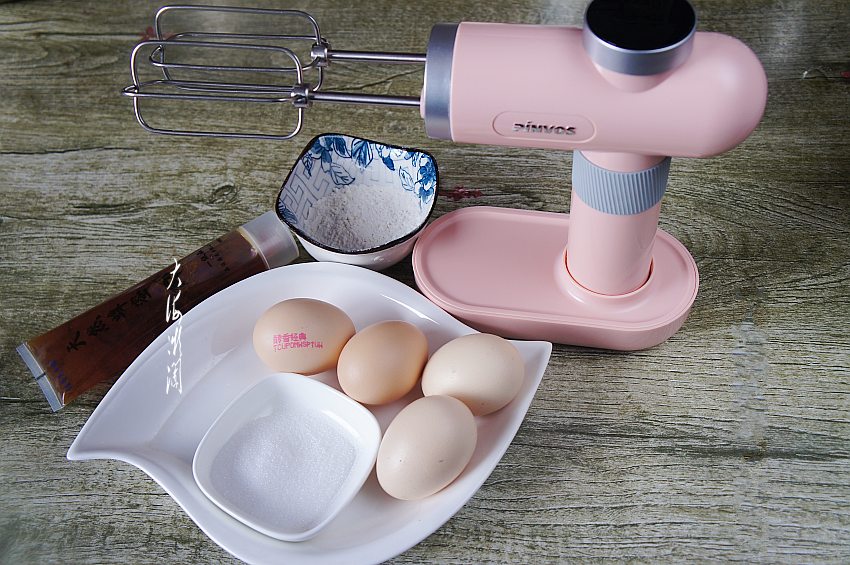 准备食材:鸡蛋4个,剩下的蛋清也不要扔掉,可以用来做蛋白酥,软炸各种食物,或者还可以用来继续做蛋糕。今天小朋友不但想吃蛋糕,还想一起做,因为她喜欢上刚刚入手的品慕无线打蛋器,粉嫩的颜色爱不释手,一定要亲自参与找感觉,无线的就是好,不用考虑电源,在哪里都能动手操作,太方便了,我也喜欢。