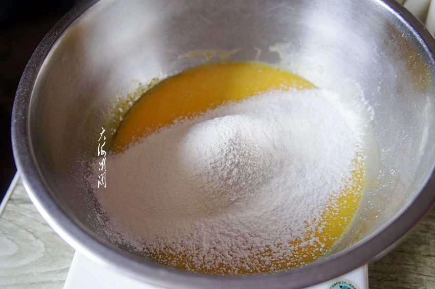 筛入蛋糕粉切拌均匀,记得是切拌而不是搅拌,不能画圈搅拌。