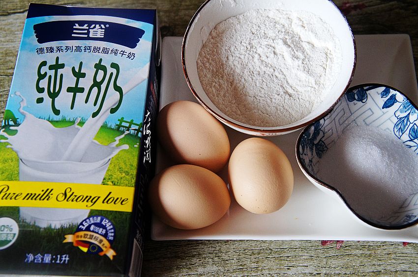 【蒸蛋糕】蛋糕粉50g;鸡蛋3个;橄榄调和油15g;牛奶20g;白糖30g;盐1g;柠檬汁1g。