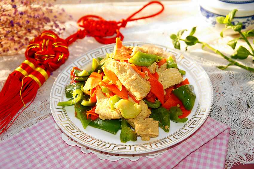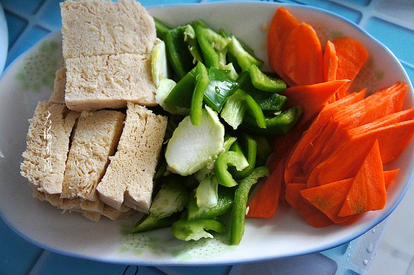 冻豆腐提前冷水浸泡解冻,然后攥掉水分,切长条。青椒在淡盐水中浸泡10分钟,然后反复清洗干净切块,胡萝卜去皮洗净切菱形块。这三种食材搭配,简单一炒,味道极其鲜美。都是极富营养价值的食材,又是减肥佳品,而且色泽艳丽,看着就有食欲,素炒,冻豆腐绵软有嚼头,青椒、胡萝卜爽口,一道味道清淡又鲜美的家常菜,适合所有人群。