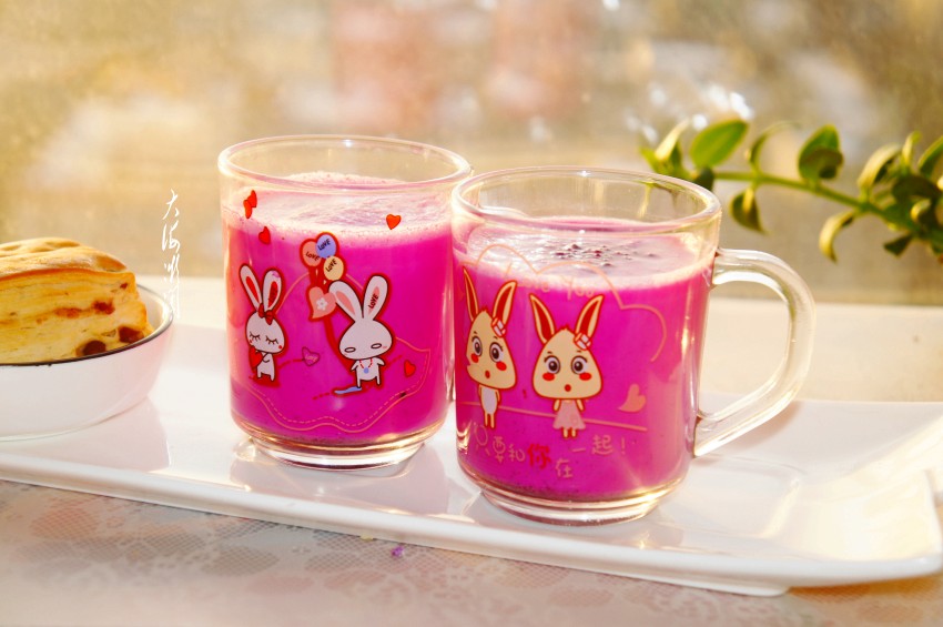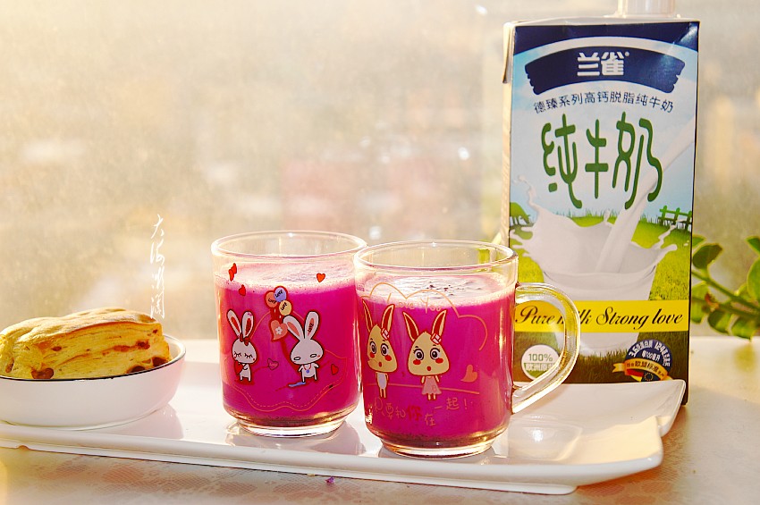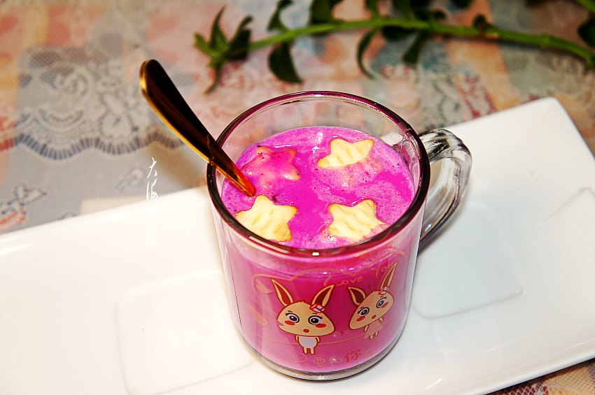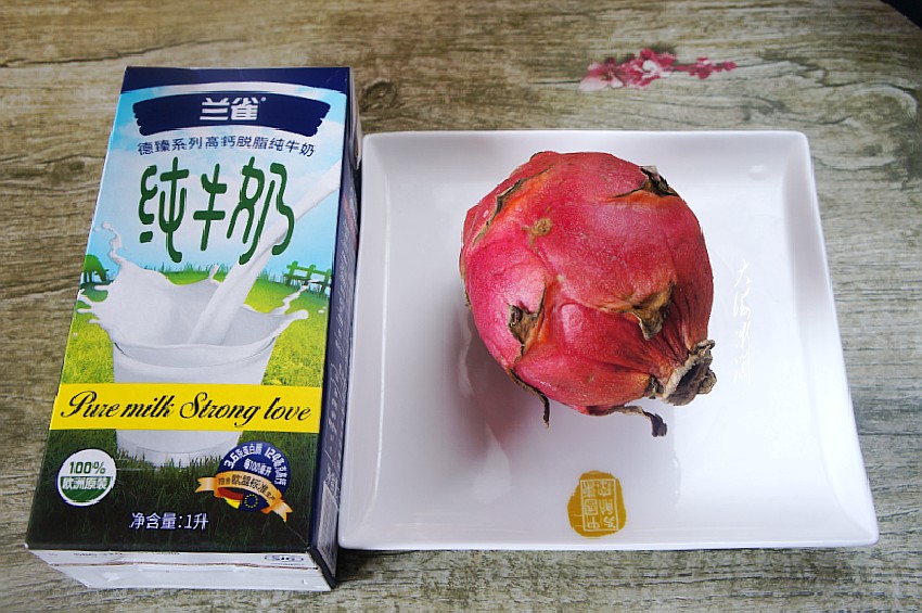 【火龙果奶昔】所需食材:红心火龙果半个;牛奶200g。