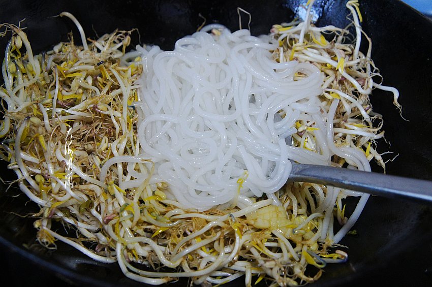 翻炒两下略微变软加入粉条,继续大火翻炒