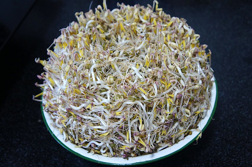 芽菜中当属绿豆芽最为常见,而且最好生发,不要出去买那些无根的绿豆芽了,自己生发很简单,一捧绿豆,温水泡上1天,然后滤掉水分,盖上湿布,压上一盆水,每天换2~3次水,不到一周的时间,就能长出满满一大盆,能吃好几顿,重要的是,自己生发没有任何添加,老人孩子吃得也放心。