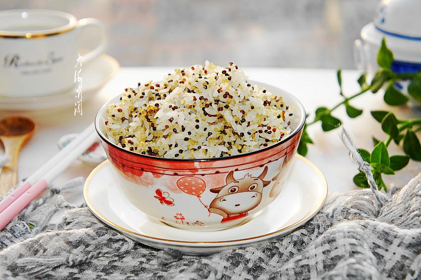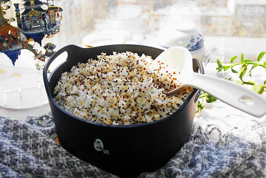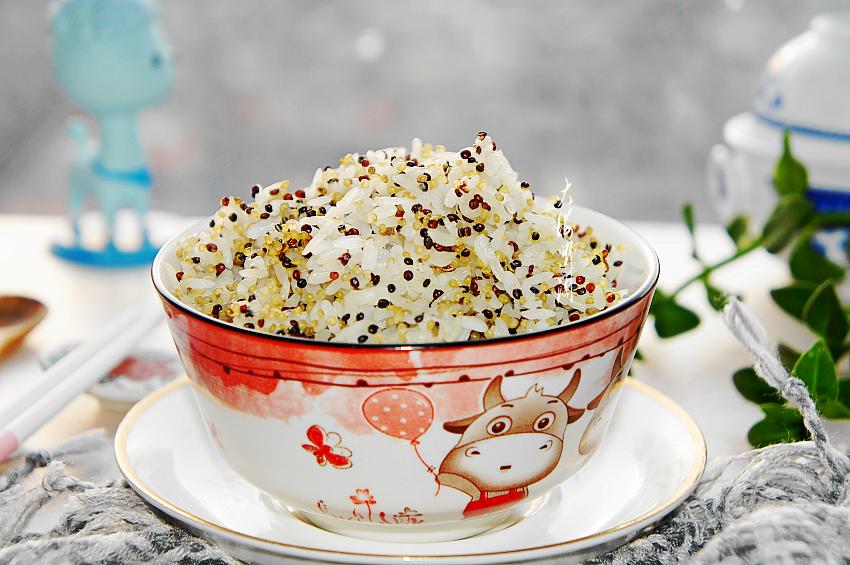 【三色藜麦米饭】所需食材:三色藜麦米100g;东北大米300g。