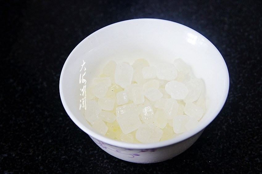准备冰糖,没有冰糖可以换成白砂糖或者白糖,冰糖更好一些,具有补中和胃、润肺止咳、保护呼吸道、清热解毒的功效。冰糖的用量随个人喜好的口感增减。