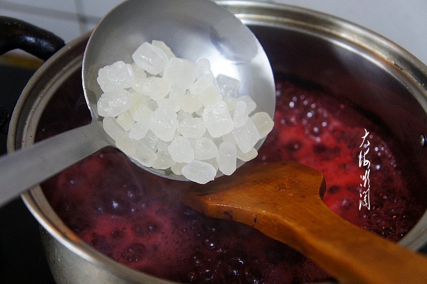 加入冰糖,小火继续熬煮,此时需要用铲子不停地搅拌,防止粘锅。