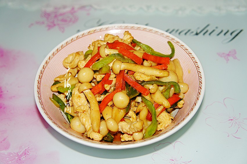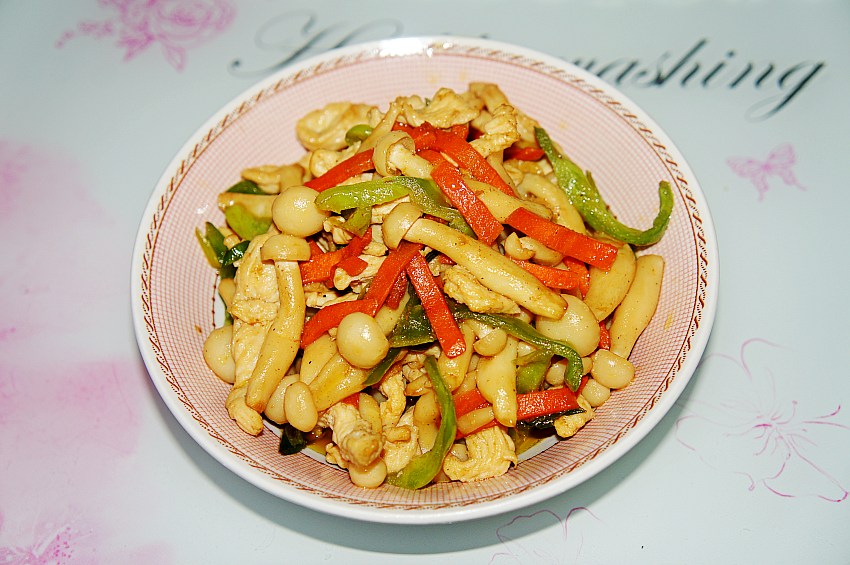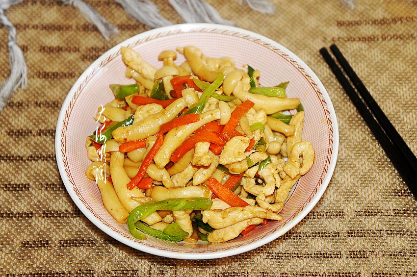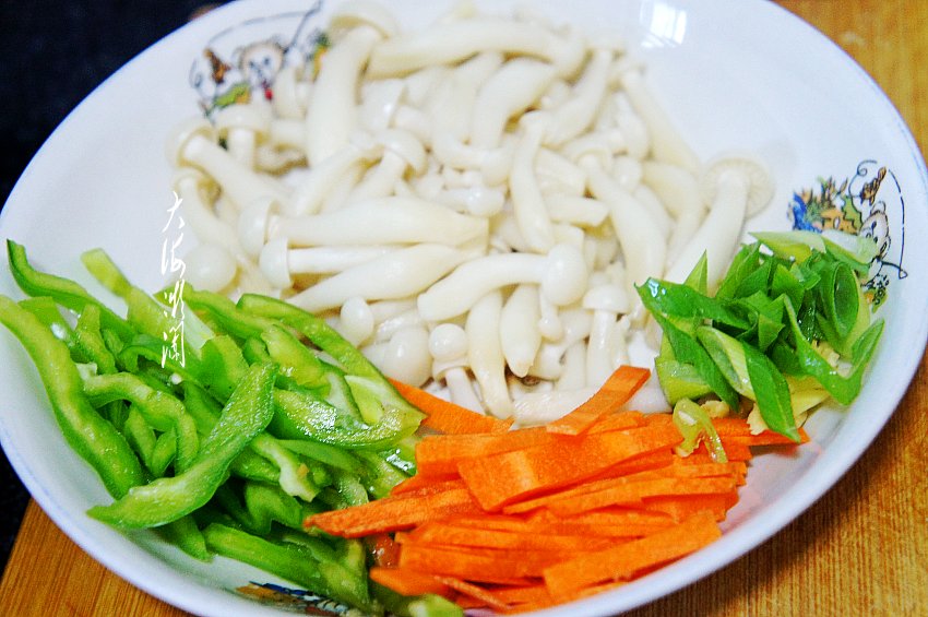 这是一道荤素搭配,营养全面,滋补又健脑的家常菜。白玉菇被誉为食用菌中的“金枝玉叶”,通体洁白,晶莹剔透,脆嫩鲜滑,清甜可口,是极具品味的美味佳肴!蛋白质含量要比一般的蔬菜都要高,富含多种氨基酸,具有补脑的功效,很适合老人孩子及孕妇食用,青椒和胡萝卜的维生素含量都很高,具有增加食欲、帮助消化、益肝明目、降脂减肥的作用。所以这几种食材搭配在一起,不但颜色漂亮,还能强健身体,提高免疫力。一起来看看具体做法吧!