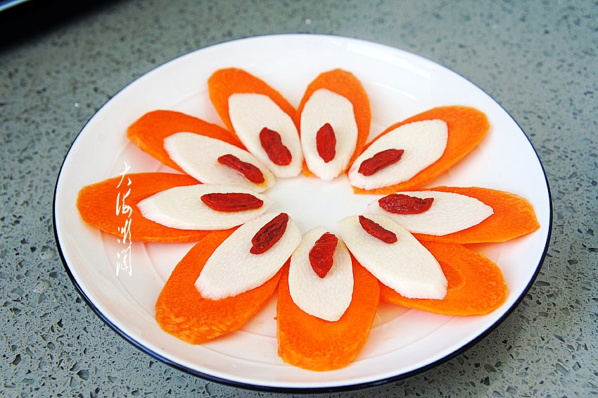 素有“小人参”之美誉的胡萝卜有益肝明目,促进消化,美容养颜的功效。与山药搭配还真是神来之笔,漂亮又好吃,还能让营养价值变得更高,让身体获取充足的营养物质,达到强健身体的目的。