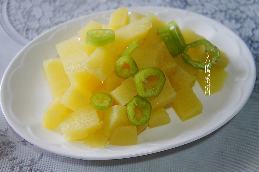 蒸熟的土豆切丁,辣椒切几个辣椒圈,这种辣椒也不辣,营养价值也很高。