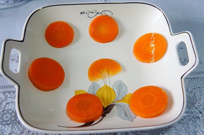 用之前焯过水的胡萝卜片码盘,可选项哈,这样做看着很有食欲吆!