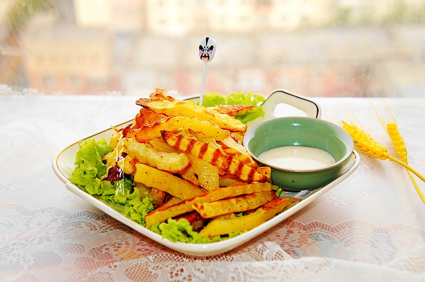 出炉装盘。简单、少油、健康,口感好,直接吃已经是非常美味了,再粘上沙拉酱,那真是有滋有味美滋滋啊!无可挑剔。