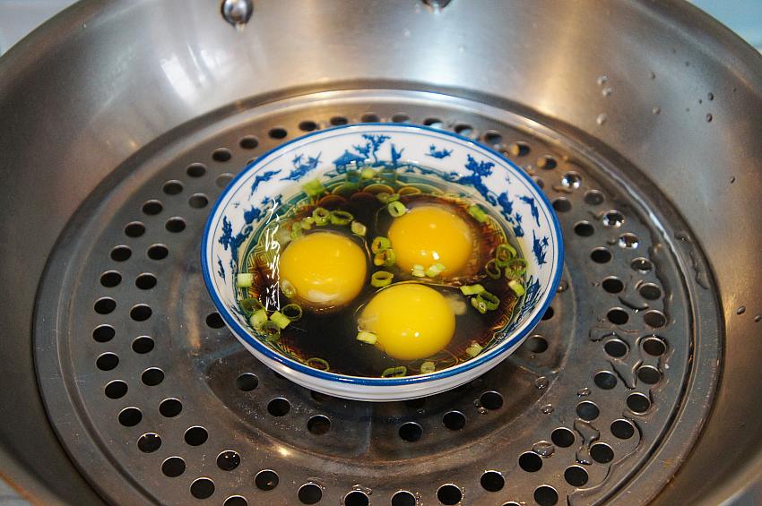 新鲜的鸡蛋准备3个,根据人数确定数量。早餐成年人鸡蛋可以吃一到两个。卧鸡蛋最好选新鲜的鸡蛋,否则蒸出来的蛋白不白,鲜嫩度和口感都会打折扣。卧鸡蛋用油也有讲究,最好是豆油,豆油做的卧鸡蛋特别香,颜色也漂亮,看上去就有食欲。当然这是最好的做法,没有豆油,其它食用油一样好吃,不过没有豆油的视觉效果。