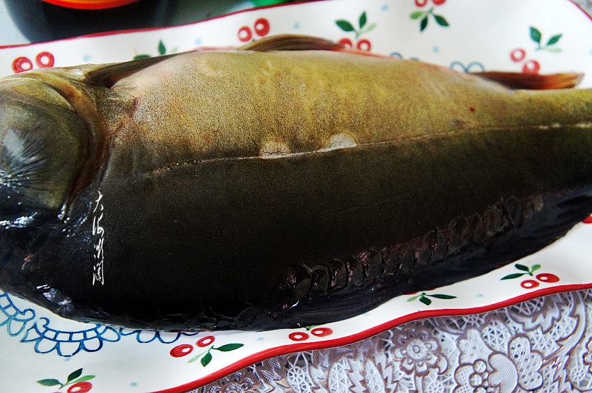 市场上买到的活鲤鱼自己不会处理的话,最好直接让商家给处理好,回来后还要仔细检查,重新清理一下鱼鳃和肚腹,然后反复用清水冲洗几遍,清洗干净,控净水分,可以在鱼背上划几刀便于入味,今天要保持鲤鱼的完整化身就不划刀了。