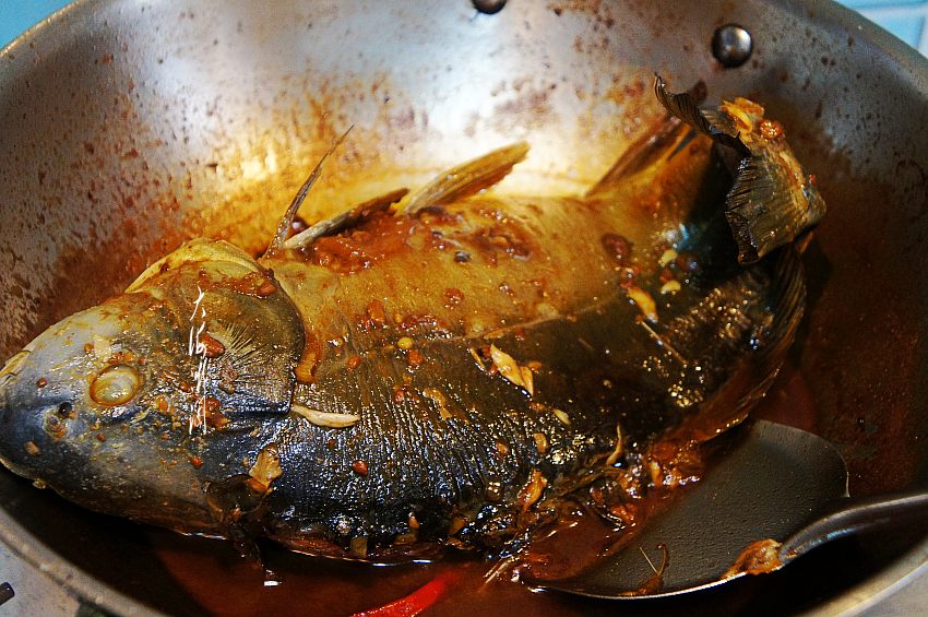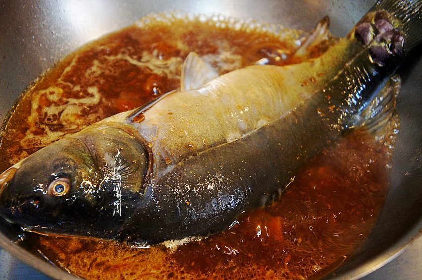出锅,这鱼焖得很有特点吧,这姿势绝对喜庆,大吉大利,祝福应考的学子们鱼跃龙门,人人取得好成绩,个个金榜题名。