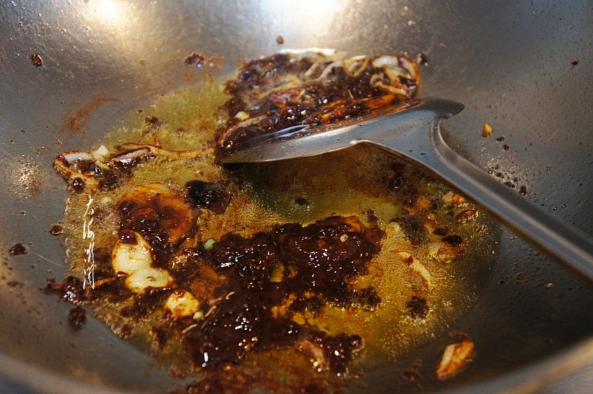 炒锅加入适量的油,爆香葱姜蒜和花椒大料,加入豆瓣酱炒出酱香味,喜欢辣味的可以选用郫县豆瓣酱,我家不能吃辣,丢进两个小米椒,只要小米椒不切断,只有一点点微辣的口感,还是挺开胃了,给孩子做最好不要放辣椒了。