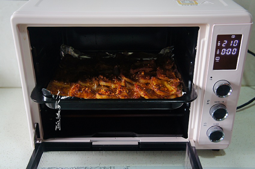 烤箱210度预热,上下火中层,烤15分钟,中间可以翻面一次。烤箱品牌不同,烘烤的温度和时间都有差别,请根据自己的烤箱设置。