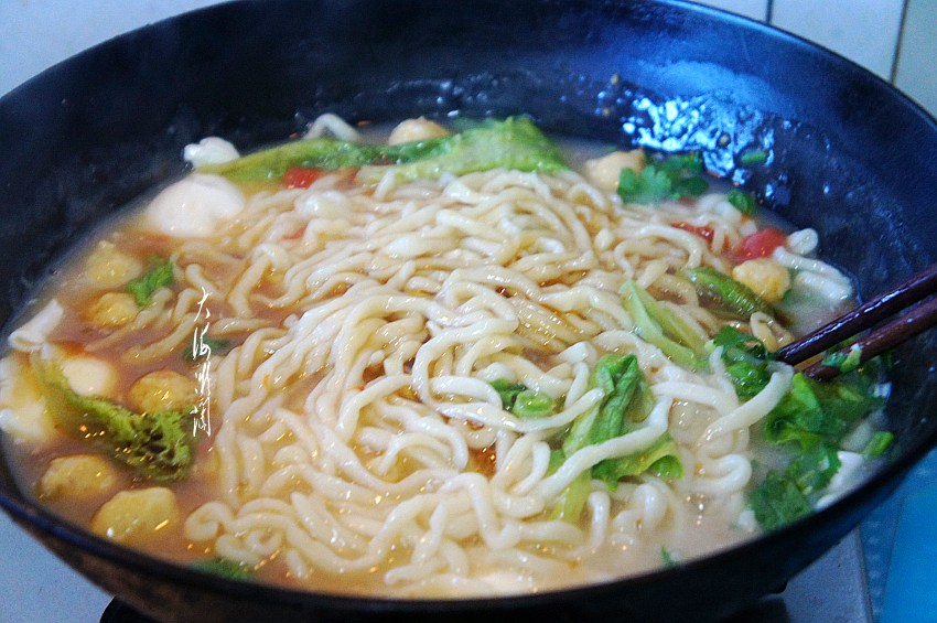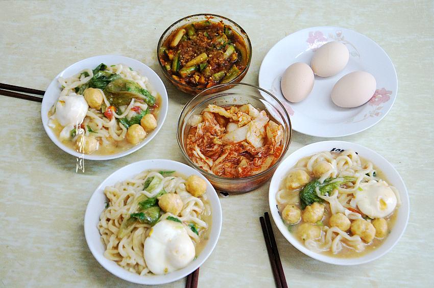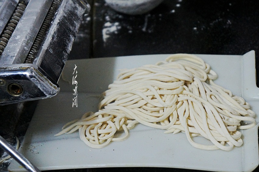 来!试试看,做法确实简单,先动手和一块面,有简易面条机最好,分成几个面团,略微擀薄送入面条机,先压成薄饼,再压成面条也就是分分钟的事儿。如果没有面条机,也要分成几个面团,因为现在谁家都没有大面板,面团小一点好擀面,擀成薄片,折叠起来一切,水开入锅煮个三五分钟,加点菜和调味料端上桌就开餐喽!