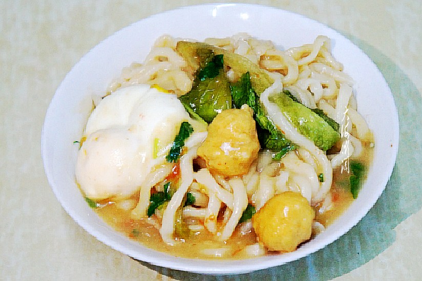 【热烫面荷包蛋】所需食材:面粉300g;鸡蛋3个;鸡肉丸适量;盐少许;生菜适量;西红柿1个;香菜适量;生抽适量;醋少许;胡椒粉少许。