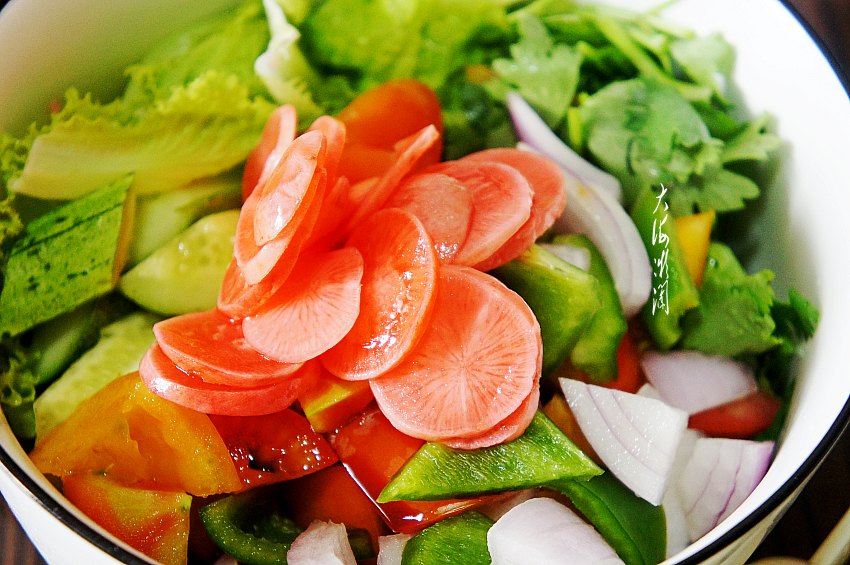 接下来就一起看看具体做法吧,食材不限哦,挑选自己喜欢吃的食材就好,主张清淡,我做的这道菜偏酸甜口,因为我用了糖醋水萝卜片和糖醋汁,非常爽口,吃得过瘾!