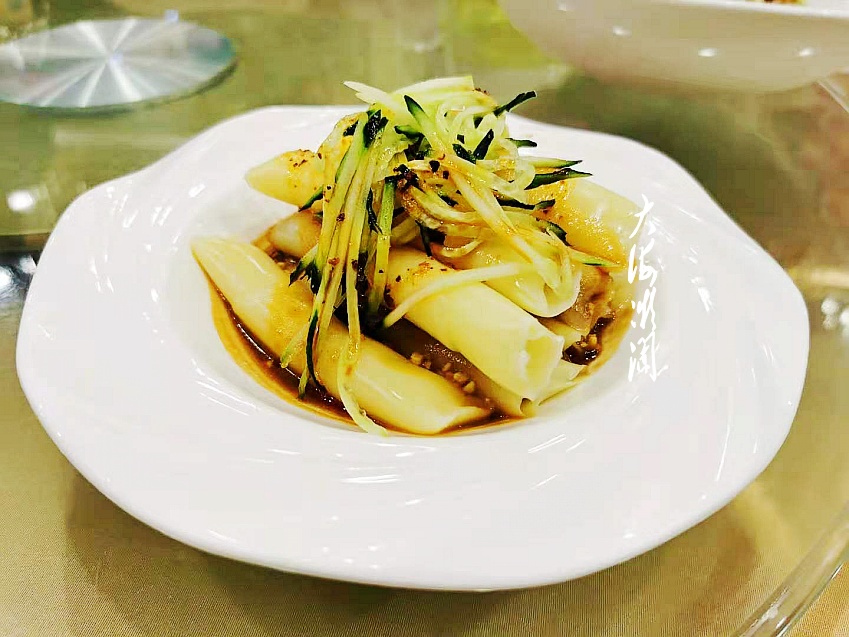 碗托是山西的一道特色小吃,尤其以晋中市平遥碗托有名,据说对是荞面做的,感觉不大像呢,这颜色透明光亮,粉白微青,觉得荞麦面没有这么白呢!而且质地柔软,口感光滑,蛮好吃的。美食街上平遥腕托比较多,大家馋了一条街,就怕吃饱了没法聚餐,所以只等着来餐厅一包口福。
