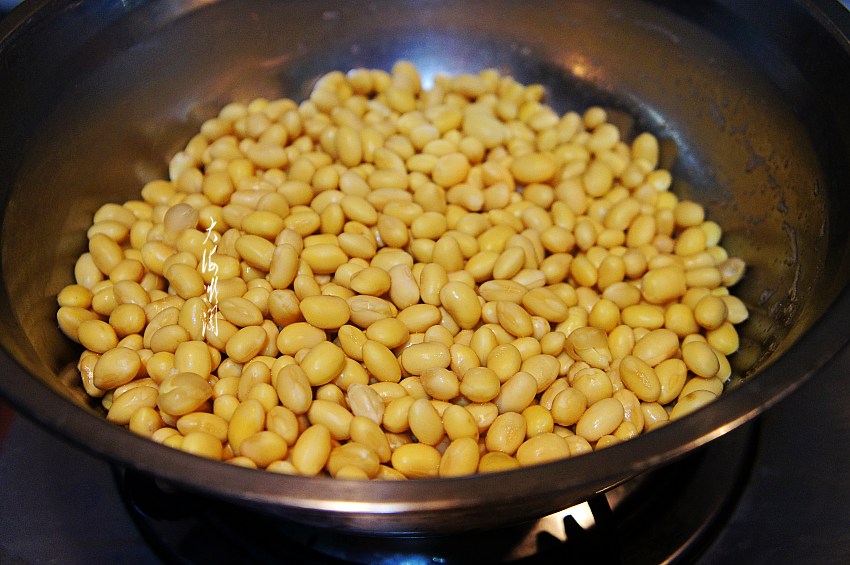 黄豆需要提前浸泡一下,冷水浸泡2小时以上,当黄豆体积长胖时,黄豆就泡好了,浸泡后的黄豆更容易煮熟,如果用压力锅煮可以不浸泡。