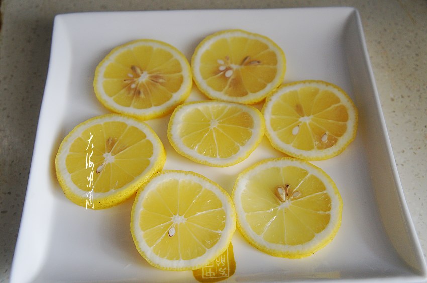 柠檬切片,码入盘中。柠檬中含有大量的维生素c和有机酸,可增强身体抵抗力,具有抗氧化,延缓衰老,促进新陈代谢,清热化痰,开胃护胃的作用。但是柠檬属于酸性食物,不可摄入过多,以免刺激胃肠粘膜,对胃部造成不适。吃不完可以选择泡柠檬水喝,促进肠胃蠕动,利于食物消化与吸收