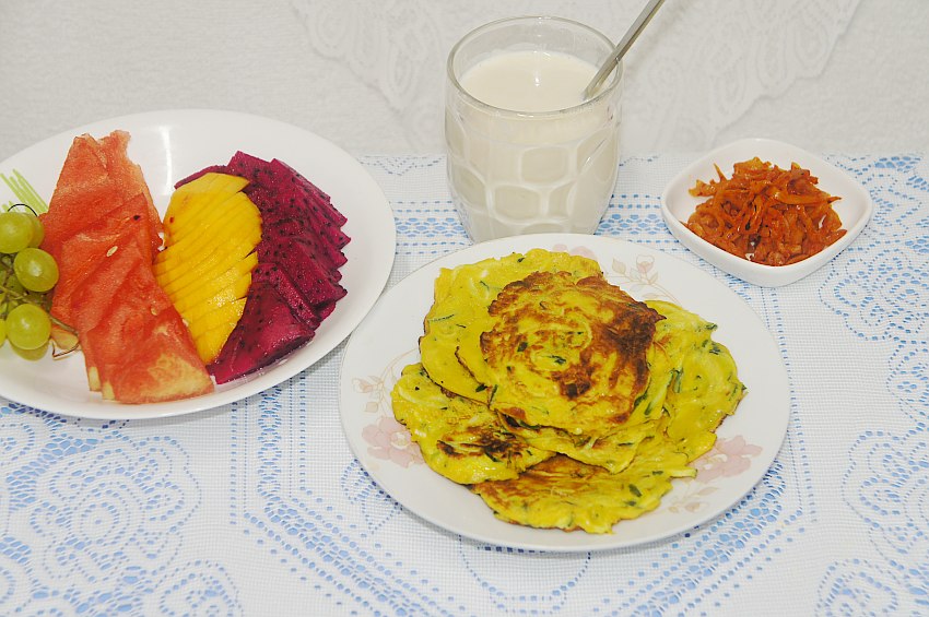 出锅装盘,黄瓜鸡蛋饼,简单易做,好吃还有营养,多吃也不会胖人,尤其适合夏日早餐。