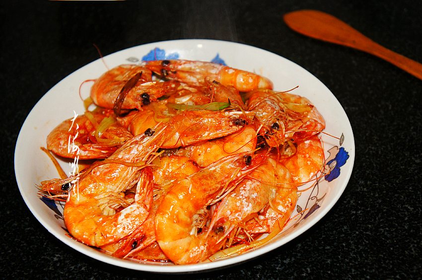 出锅装盘。后放葱姜蒜爆炒,这样不仅有虾自身的鲜香,还有葱姜蒜的余味,鲜美至极,好吃到停不下来。