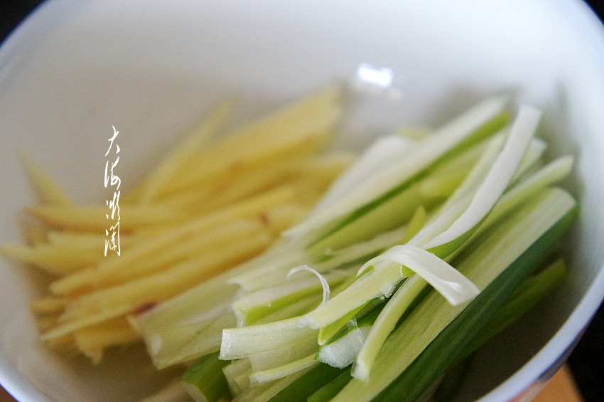 葱、姜、蒜去皮洗净,分别切片切丝。