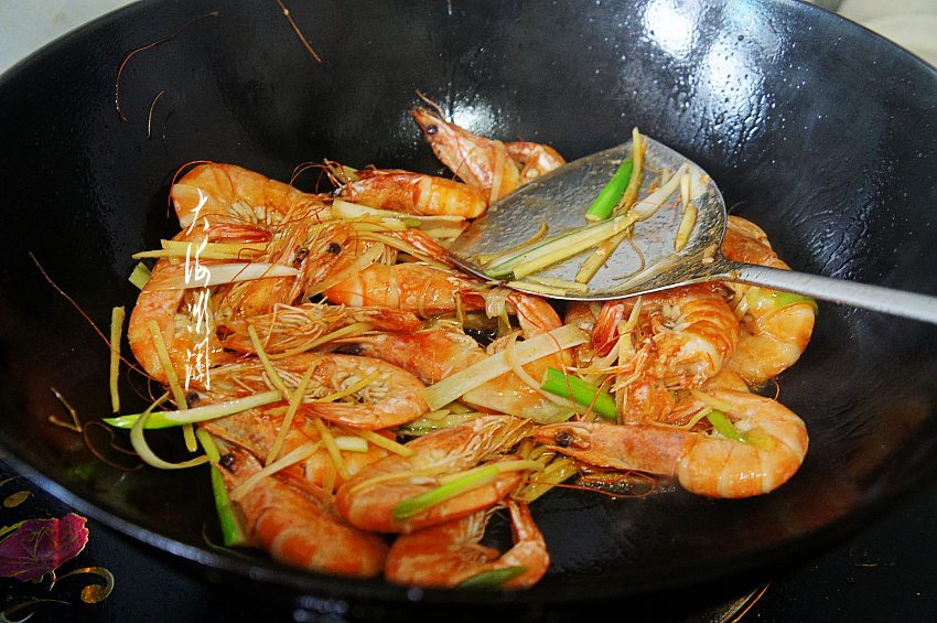 2、这道菜需要大火爆炒速成,才能保证虾的鲜嫩,味道鲜美。