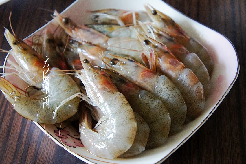 准备食材,远离海边的人群,买新鲜的海鲜需要去大超市,所以通常冰箱都备有冷冻海鲜,吃起来更方便。冷冻鲜虾取出解冻,反复清洗干净,在倒数第二节处挑出虾线,然后再次清洗干净,也可以做成开背虾。