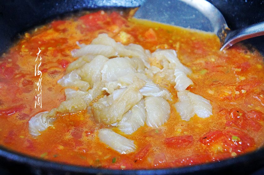 加入腌制好的龙利鱼片,开锅煮上三五分钟就好。