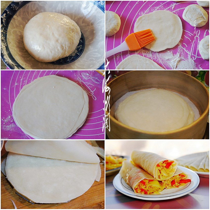 第二道:春饼。又薄又软又劲道,卷肉卷菜吃那是真香!春饼的做法也很多,有烫面、半汤面、不烫面的春饼,有烙有蒸,各有特色,共同点就是薄、软、劲道,好做又简单。