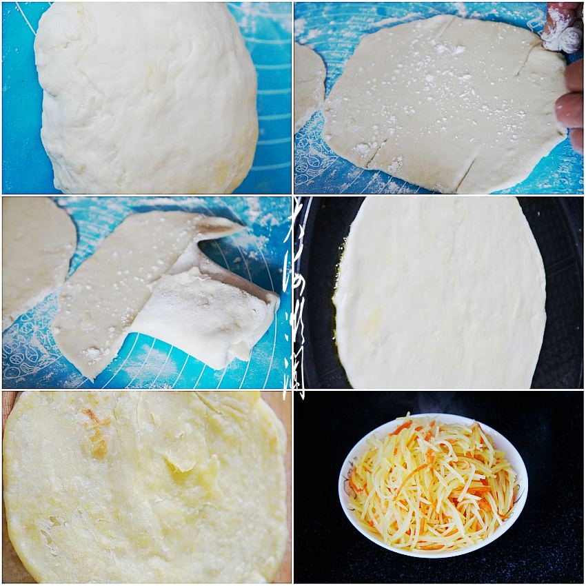 食材:面粉200g;油适量;盐1g,土豆丝1盘。