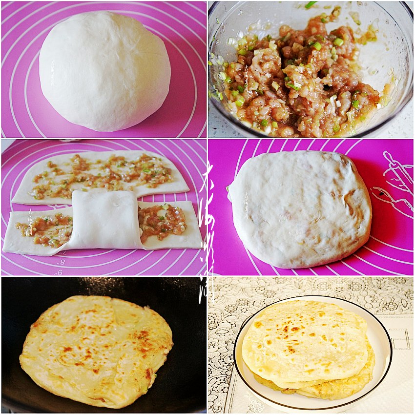 5、用手压一压就成饼了,也可以用擀面杖擀成圆饼,注意动作要轻,否则容易露馅。