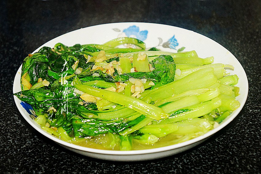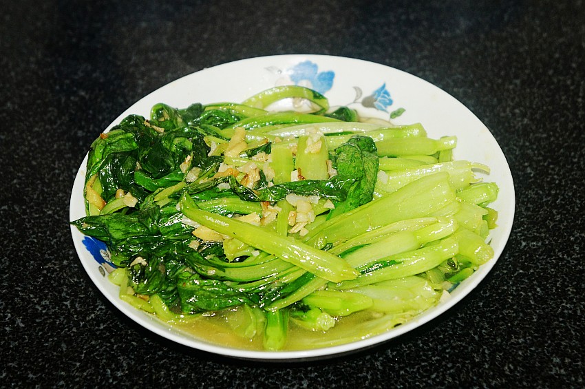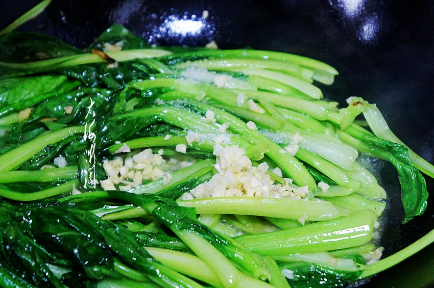 新鲜的小油菜很脆嫩,爆炒一分钟足矣,别炒过了,然后加入剩余的蒜末、适量的食盐,少许蚝油、少许生抽调味,快速翻炒两下就可以起锅装盘上桌了。