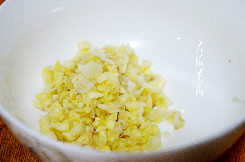 姜去皮洗净切丝,大蒜去皮洗净切成蒜末。大蒜是厨房中很好的调味品,也是很好的营养品,还是天然的植物广谱抗菌素,它的杀菌能力是青霉素的1/10,具有抗炎杀菌、调脂降压、降糖、抗衰老等作用,夏秋之交多吃点大蒜对提高免疫力很有效果。